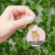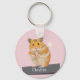 Essa encantadora cadeia de teclas personalizadas apresenta um Ouro giro e fofo Hamster segurando uma flor contra um fundo rosa. O nome pode ser mudado. Um presente adorável ou um enchedor de estoque.