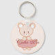 Personalize este giro giro giro usando o modelo ou clique em "Personalizar" para modificar o design. Apresentando um gráfico vetorial desenhado de uma garota de ursinho bonitinho em um vestido rosa com um campo de modelo de texto personalizável.