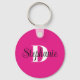 Chaveiro Girly Hot Pink Black and White Modern Monogram