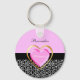 Um chaveiro impressão de girafa branca e preta, com um coração cor-de-rosa e dourado que diz princesa. Personalize adicionando seu nome. Perfeito para a na moda e adolescente da moda.
