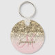 Chaveiro Girly Pink Gold Glitter Sparkles Monogram Name