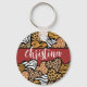 Chaveiro Girly Red Playful Animal Print Hearts Name