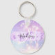 Chaveiro giro e fofo com cor rosa, roxo, lilás e corações arco-íris unicórnio azul e roxo com fundo cintilante. Seu nome personalizado e monograma são escritos em um elegante script com letras de mão com um fundo de pincel púrpura de pincel de pincel de unicórnio púrpura. Um aniversário perfeito ou presente de Natal!