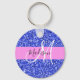 Chaveiro Glam Dark Blue Glitter Sparkles Nome Monograma