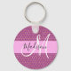 Glam e fuchsia córnea e dourada-metálica-penteada padrão de abelhas nome monograma e chaveiro inicial. Seu nome personalizado e monograma são escritos em um elegante roteiro escrito à mão preto e branco com fundo rosa. Você pode alterar a cor do texto, o estilo e o tamanho da fonte usando a opção personalizar.