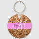 Glam and girly pink and copper glitter sparkles white monogram name and initial keychain. Your custom name and monogram are written in an elegant hand lettered script with a pink background. You can change the text color and font style and size using the customize option. A perfect birthday or Christmas gift!