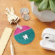 Dente sorridente moderno e giro com bochechas rosadas e padrão de brilho de turquesa aqua (não brilho de verdade) com uma faixa de coração rosa personalizada com os presentes de seu nome, presentes de monograma ou suas iniciais. Se clicar no botão personalizar, você poderá alterar a cor e o tipo de fonte e também poderá adicionar as suas próprias fotos. Ideias de presentes para dentistas, estudantes dentários e crianças.