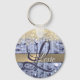 Cordas surpreendentes de miçangas em um sombreamento azul em pó junto com uma lamela dourada bordada no topo para um brilho extra com uma fita dourada no meio onde você pode personalizá-la. Chic de brilho cintilante