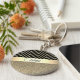 A stylish gold and black chevron pattern combined with glittery gold and a gold ribbon in the middle for contrast where you can personalize it with a name, letter, or logo. Trendy modern vibes.