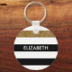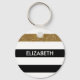 Personalize este moderno chaveiro de padrão horizontal preto e branco com uma faixa de brilho dourado, adicionando o nome de qualquer garota feminina. Este padrão gráfico de tendência é perfeito para a moda quic. Imagem impressa plana, NÃO com brilho real.