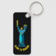 A chaveiro design dedicada às pessoas da Ucrânia apresenta uma versão abstrato moderna do icônico Monumento da Terra-Mãe Ucraniano em Kiev, em tons de azul e amarelo (as cores da bandeira da Ucrânia) com "Glória à Ucrânia" texto curvo sobre fundo negro.