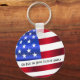 A United States flag is used on this product, but due to the size and round shape, only a small portion shows. Part of the stars and stripes that fit the item is displayed with the words "God Bless The United States Of America" in black going across the first white line beneath the blue star panel.