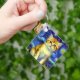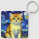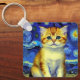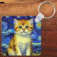 Chaveiro com um gatinho Van Gogh! Este pequeno gatinho laranja e branco se posiciona com a Noite Estrelada. Um presente perfeito para amantes de gatos e colecionadores de arte holandeses!