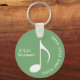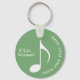Graphic white musical note on a (custom color) greenish-keychain, personalized with her name and text