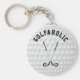 Adicione sua própria legenda ou um nome para personalizar este chaveiro de botão redondo. Concebido para um grande golfista, o texto predefinido é "GOLFAHOLIC". O design tem dois tacos de golfe no fundo de uma bola de golfe.