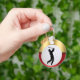 An elegant keychain to hold the keys of a golf enthusiast. The design features the silhouette of a male golfer placed over a large golf ball and set on an elegant ruby and gold background. To edit the design -- resize, replace, reposition or remove any of the design elements -- select "Personalize this template" the select "Edit using Design Tool." A similar design is also available for the female gender on this Zazzle store.