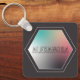 chaveiro de cinza na moda com quadro de gradiente hexagonal holográfico estilo retrorreflector y2k em cores de luz pastel, incluindo rosa amarelo azul com um nome no meio. Acessórios do estilo moderno.