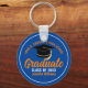 Este chaveiro de formando personalizado, cor de laranja e azul moderno, apresenta o seu segundo grau ou nome de universidade para a classe de 2023. Personalize com o seu ano de graduação com o script de chic manuscrito e o boné de formando preto para um presente de cadeia de chave de graduação personalizada de excelente.