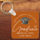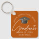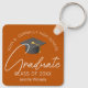 Este moderno chaveiro de formando personalizado laranja queimado apresenta seu segundo grau ou nome de faculdade para a classe de 2025. Personalize com o seu ano de graduação sob o roteiro de chic manuscrito e boné de formando para um presente de cadeia de chave de graduação personalizada do excelente.