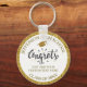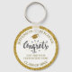 Um legal chaveiro de Graduação com um boné de formatura, texto festivo de Parabéns e seu texto personalizado - adicione sua escola, classe de ano e texto personalizado (nome, data, grau, etc.), tudo emoldurado por um fundo falsa de ouro. Perfeito para a graduação, um favor ou um presente.