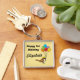 Uma ilustração de um giro cartoon kawaii com balões de aniversário coloridos. Comemore sua festa de aniversário de criança com este design das necessidades da festa, acessórios para presentes. Personalize ou personalize este chaveiro bonitinho como seu símbolo de apreço para seu convidado.