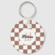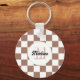 Os quadrados-verificadores mocha castanho-branco retro-chaveiro Monograma. Acessórios dom padrão quadrado geométrico retro Legal. Personalize com seu nome e inicial personalizados.