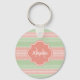 Um chaveiro de padrão verde-creme cinza com faixas cor-de-rosa que você pode personalizar adicionando seu nome e monograma inicial ao crachá em forma de quatrefoil. Esta é parte da Coleção Nilo Verde e Blooming Dahlia Knit. Imagem impressa plana NÃO feita com fio ou rendas.