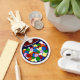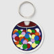 Jovens motoristas chaveiro com uma máquina de bolos de chiclete redonda, cheio visual de chiclete delicioso em várias cores, como rosa, vermelho, amarelo, branco, verde e roxo. Todos se lembram de pegar uma bola de chiclete de uma dessas máquinas clássicas em uma loja local e adorá-la!