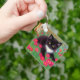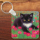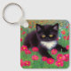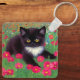Chaveiro com um gato gustav Klimt tuxedo! Este adorável gatinho preto e branco se senta num campo de flores vermelhas, azuis, brancas e laranja. Um presente incrível para amantes de gatos e entusiastas de arte austríacos!