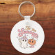 Halloween Esta é a chaveiro da temporada mostra um adorável fantasma em um chapéu de bruxa lavanda, e jack-o-lanterno de laranja, e texto que lê Esta é a estação, um adorável e feminino design de Halloween.