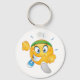Um emoji feliz correndo com suor saindo dele. Esta design parece realmente eficaz nestes Chaveiro