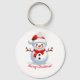 Frontview de um feliz boneco de neve vestindo um chapéu de Natal. As palavras "Feliz Natal!" podem ser facilmente substituídas por palavras da sua própria escolha. O design digital foi criado usando a IA.