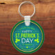 The design displays a round, green St. Patrick's Day. The Keychains features a dark green background with a lighter green border and gold/yellow text and design elements.