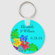 Chaveiro Hawaiian Flowers Aqua Wedding Favor