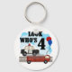 Um cruzador da polícia, motor de incêndio, balões e texto que diz "Olha quem é 4" aparece no nosso design de aniversário do Dia 4 de Heróis.