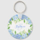 Esta cadeia-chave apresenta um design floral de aquarela moderno com flores de hydrangea azuis e folhagem verde. Personalize-o com um nome e inicial.