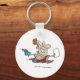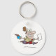 Um homem correndo com café e papel. Esta design parece realmente eficaz nestes Chaveiro