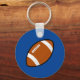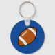 Uma bola marrom com fundo azul brilhante e colorido. É numa CADEIA CHAVE.