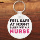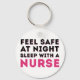 Sinta-Se Seguro À Noite, Dorme Com Uma Enfermeira Uma enfermeira engraçada, doida, fofa, dizendo uma citação em texto rosa quente e preto.