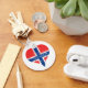 Esta design apresenta a bandeira da Noruega num coração, a bandeira parece ter sido pintada na superfície e a tinta está um pouco angustiada ou confusa.