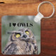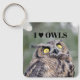 Show off your love for owls with this keychain featuring a wide-eyed great horned owl.