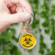 Ícone de aviso de risco biológico em fundo amarelo. Dois campos de texto personalizados em círculo.