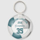 Este teclado de futebol fácil de personalizar apresenta a imagem realista de uma bola de futebol que tem teal, cinza e painéis brancos, sobre os quais você pode personalizar o nome do atleta, número de jersey, nome da equipe e mascote e ano na frente e letra de monograma ou varsidade na parte de trás - por katz_d_zynes