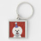 Chaveiro que caracteriza uma ilustração bonito de um cão branco de Bichon Frise que veste um chapéu roxo do partido! © Lisa Marie Robinson dos trabalhos de arte. Todos os direitos reservados.