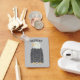 Esse chaveiro está pronto para ser personalizado com um nome e mostra uma ilustração de uma águia-calva americana em pé contra um fundo de cinza de luz. O gráfico e o nome aparecem em ambos os lados da etiqueta.
