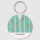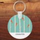 Um chaveiro personalizado com ilustração de pássaros com pássaros laranja sentados em seus ramos. Fundo colorido verde retrô.