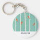 Um chaveiro personalizado com ilustração de pássaros com pássaros laranja sentados em seus ramos. Fundo colorido verde retrô.