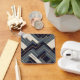 Linhas de ouro e formas geométricas em azul-indigo, cinza-azul e bege constituem essa ilustração impressionante e contemporânea. Nome personalizado
