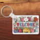 Chaveiro Ilustração Vintage BOAS-VINDAS com Flores