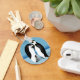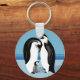 A arte da vida selvagem em cadeias-chave que retratam uma família de pinguins imperadores.